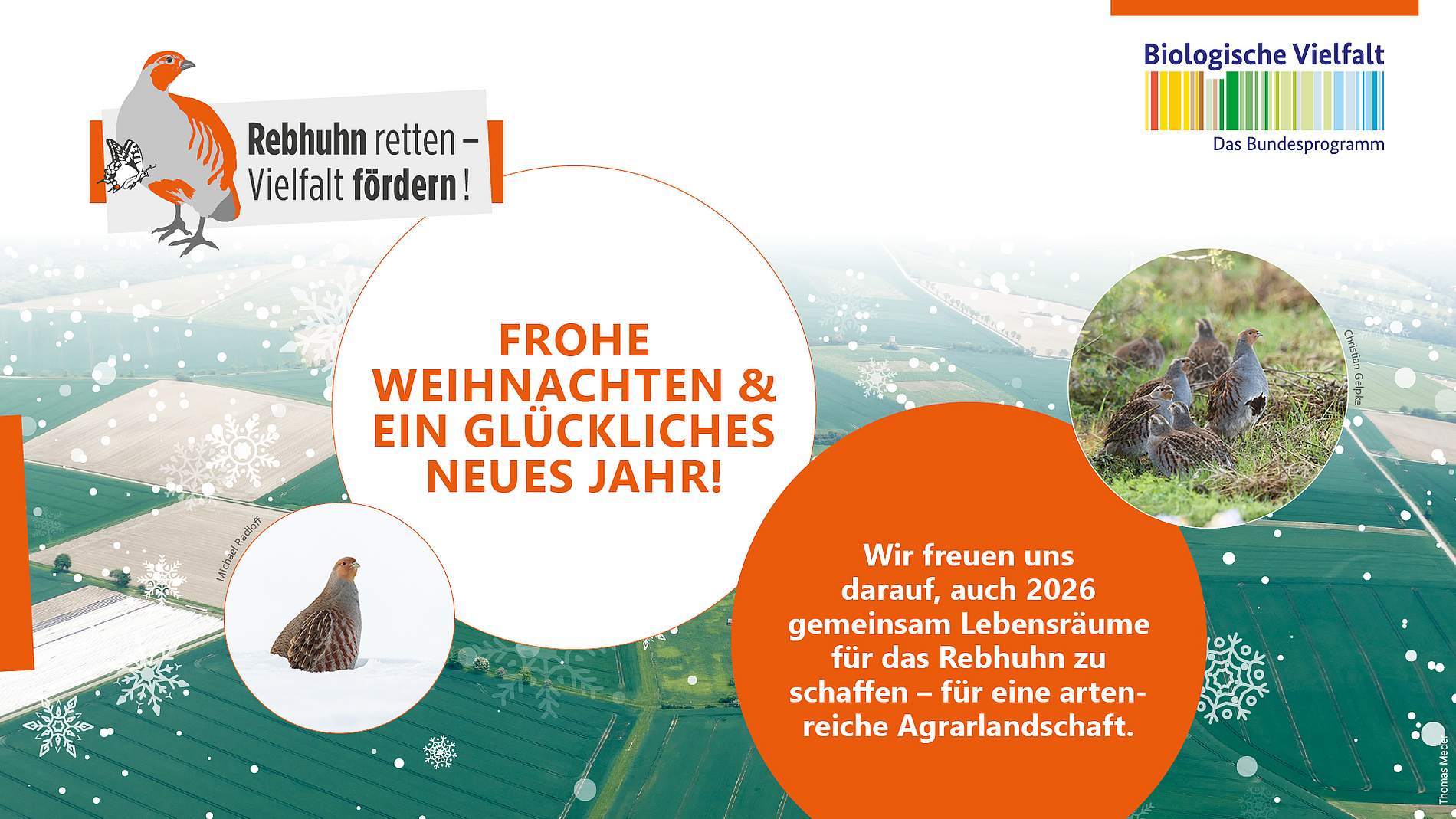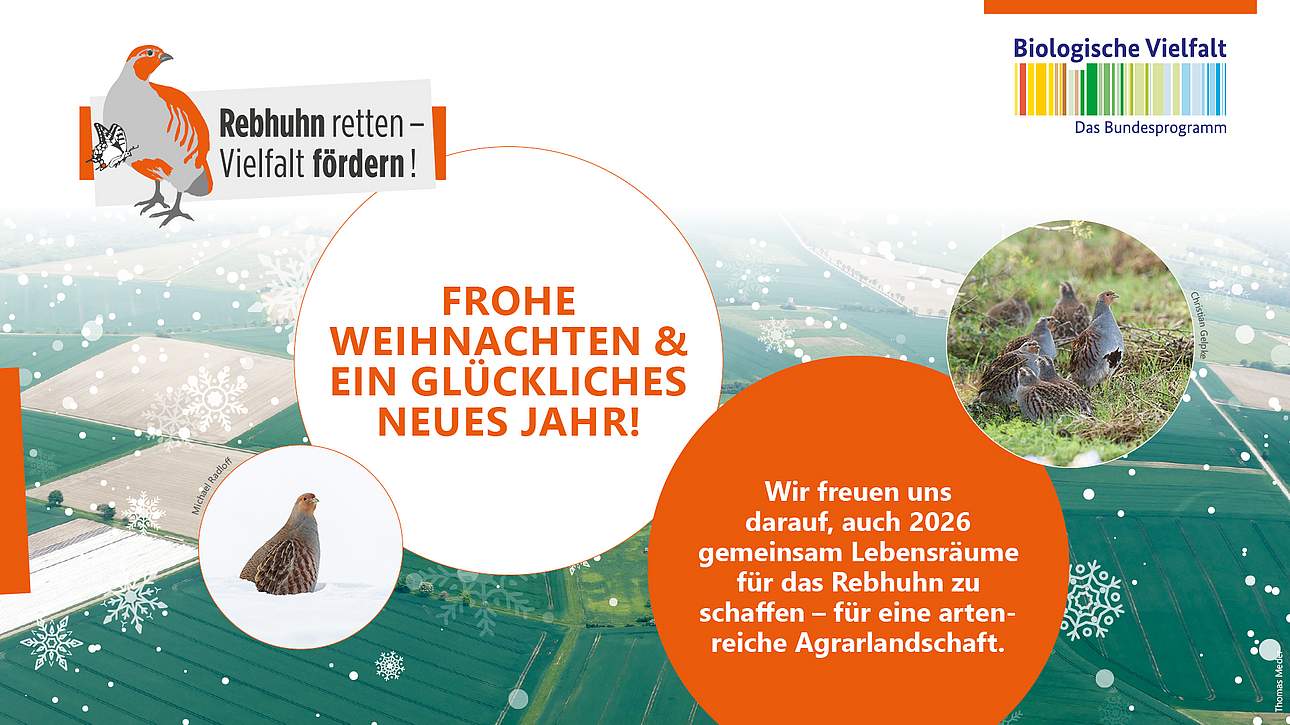 Das Projektteam von „Rebhuhn retten – Vielfalt fördern!“ bedankt sich herzlich bei allen Partnern für die gute Zusammenarbeit. Lebensräume für das Rebhuhn entstehen nur durch gemeinsames Handeln von Landwirtschaft, Jägerschaft, Naturschutz, Wissenschaft, Politik und uns allen.